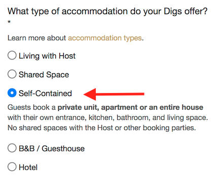 Next you can choose the type of accommodation you offer.