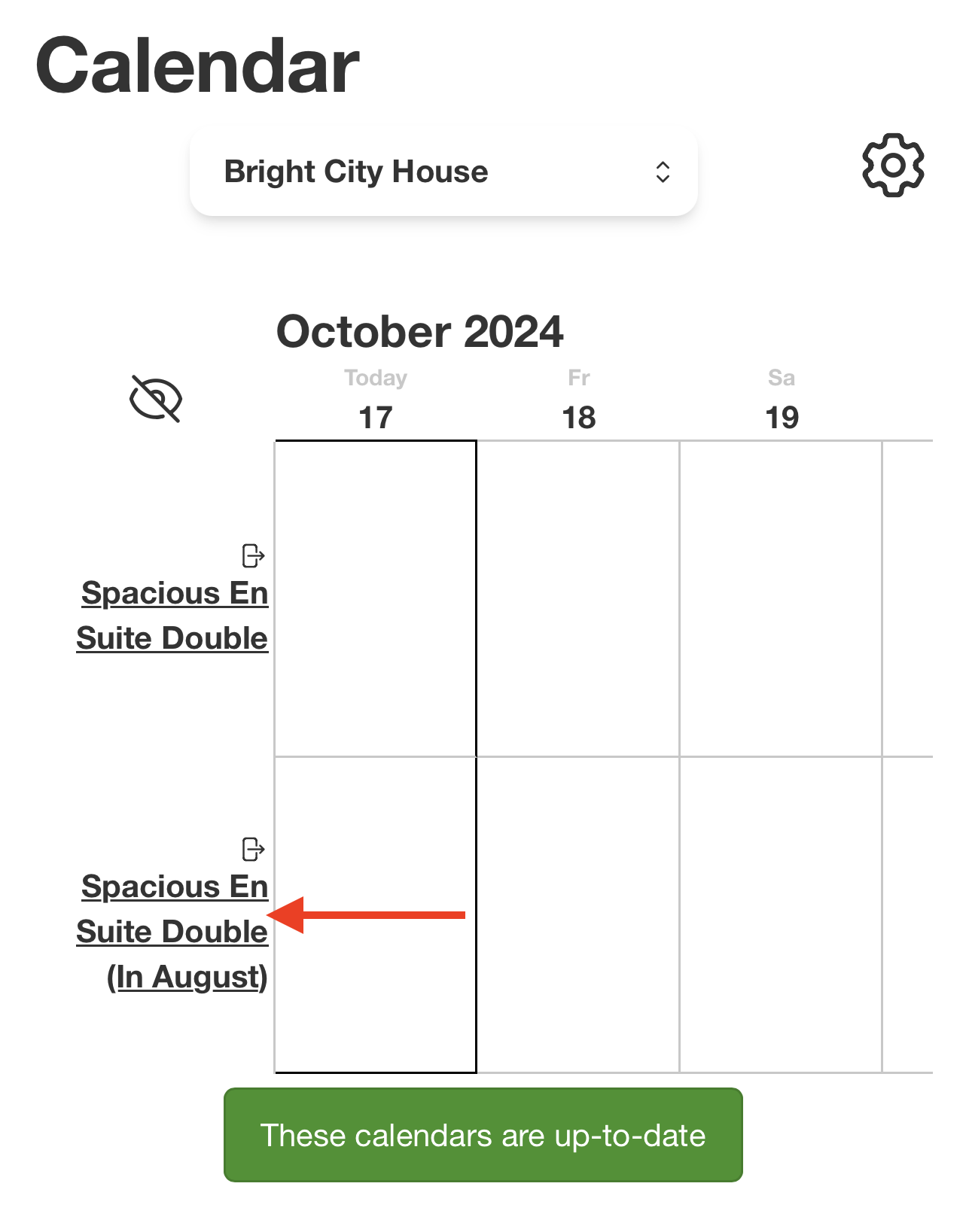 Your calendar should look like this when complete, with one room becoming available as the other becomes unavailable: