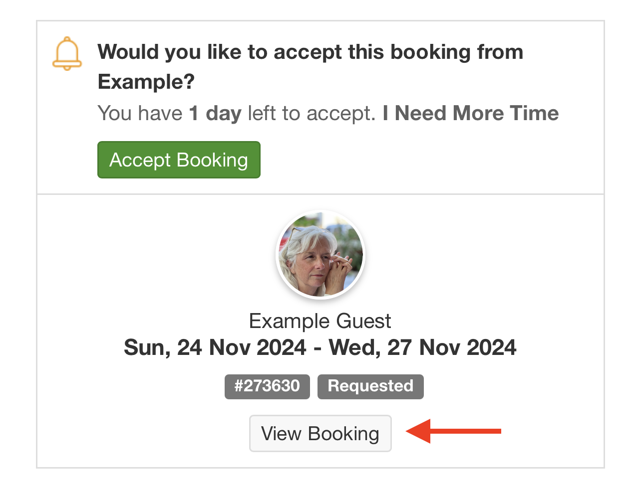 8. If you have rejected the booking due to no availability, a reminder to update your calendar may be displayed on the page.