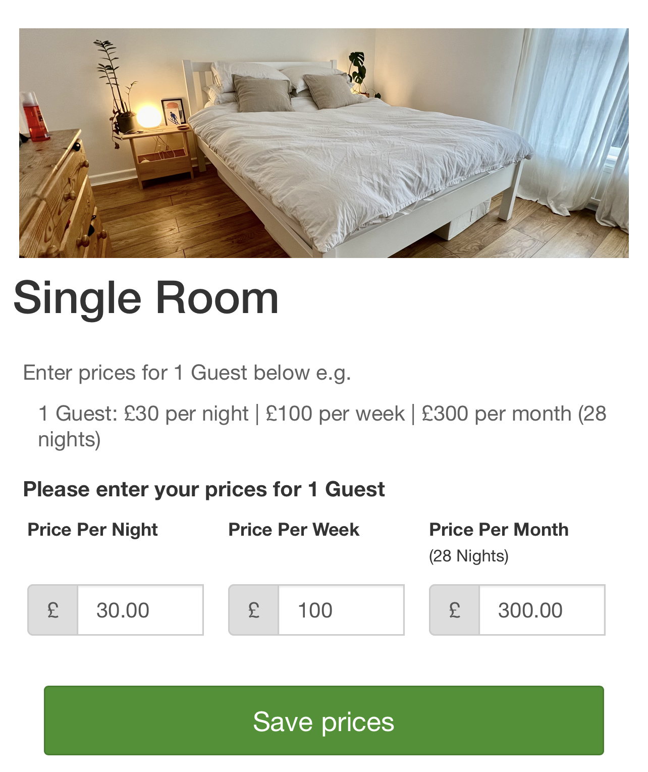5. Here you can start adding the room details including room name, number of Guests, bed type and type of bathroom.