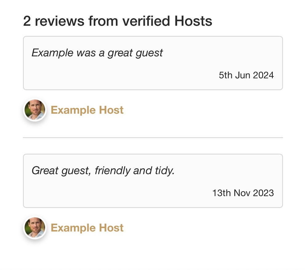 - A 'Reviewed' badge (Confirming that Hosts have left reviews about you).