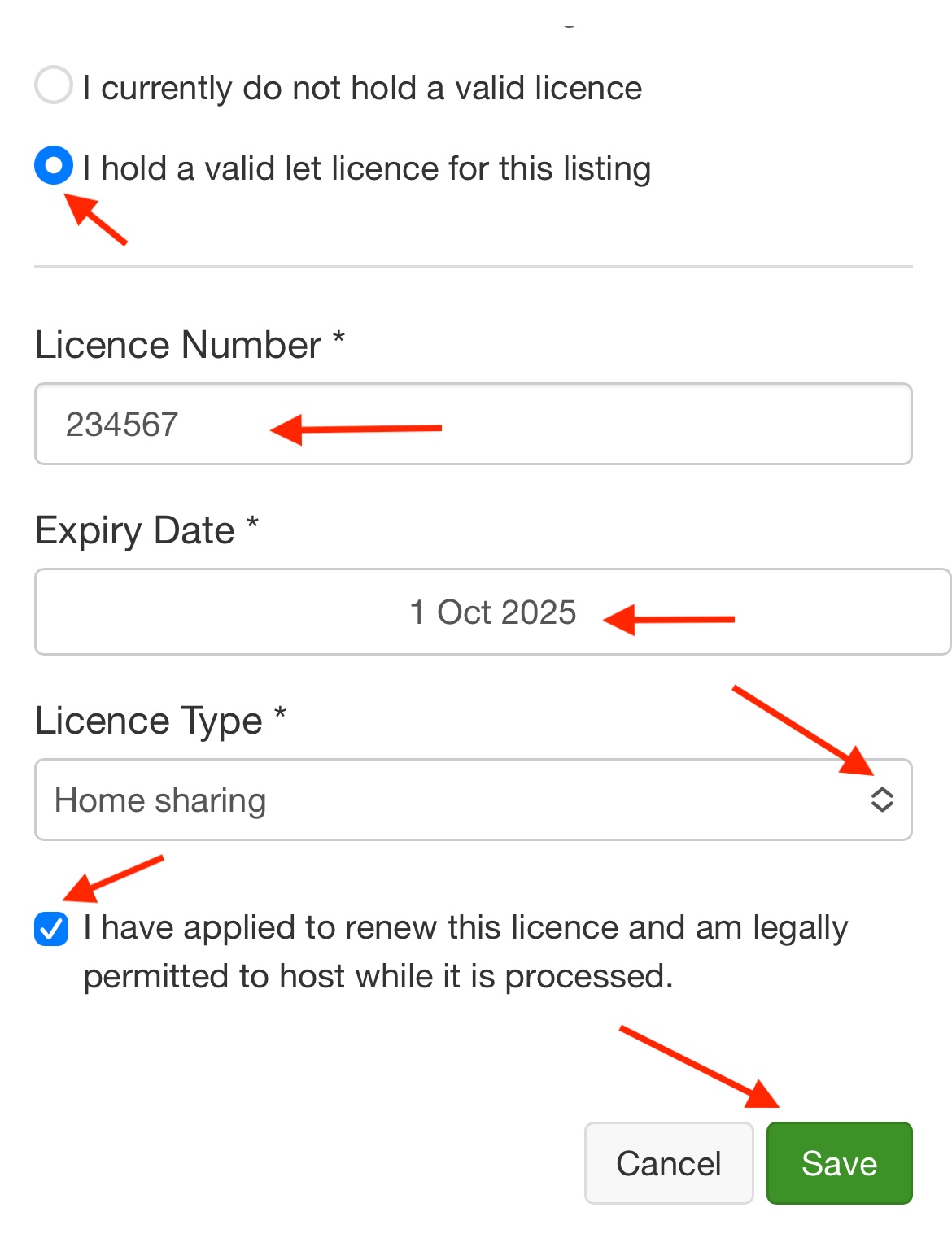 4. Under 'Letting Compliance', tap on the radio button next to 'I have a valid let licence for this listing'.