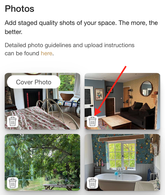 Note: To delete photos just tap on the bin icon on the photo you wish to delete: